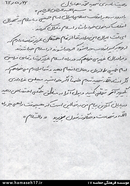 در انتها این دیدار، وصیت نامه شهید قرائت شد.