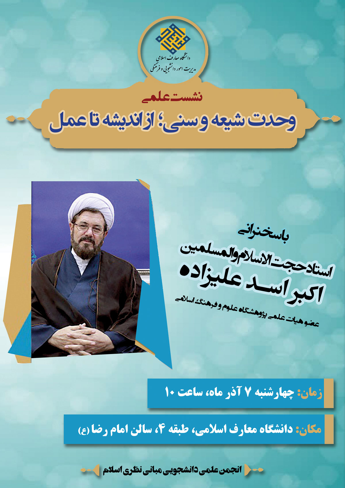 سخنران: حجت الاسلام و المسلمین دکتر اکبر اسد علیزاده عضو هیات علمی پژوهشگاه علوم و فرهنگ اسلامی