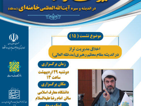 هفدهمین پیشنشست همایش ملی “مدیریت تراز انقلاب اسلامی در اندیشه و سیره آیتالله العظمی خامنهای” به صورت حضوری و مجازی یکشنبه ۴ خرداد ساعت ۱۰:۳۰ با ارائه جناب آقای دکتر وحید وثوقی راد استادیار گروه مدیریت موسسه آموزشی و [...]
